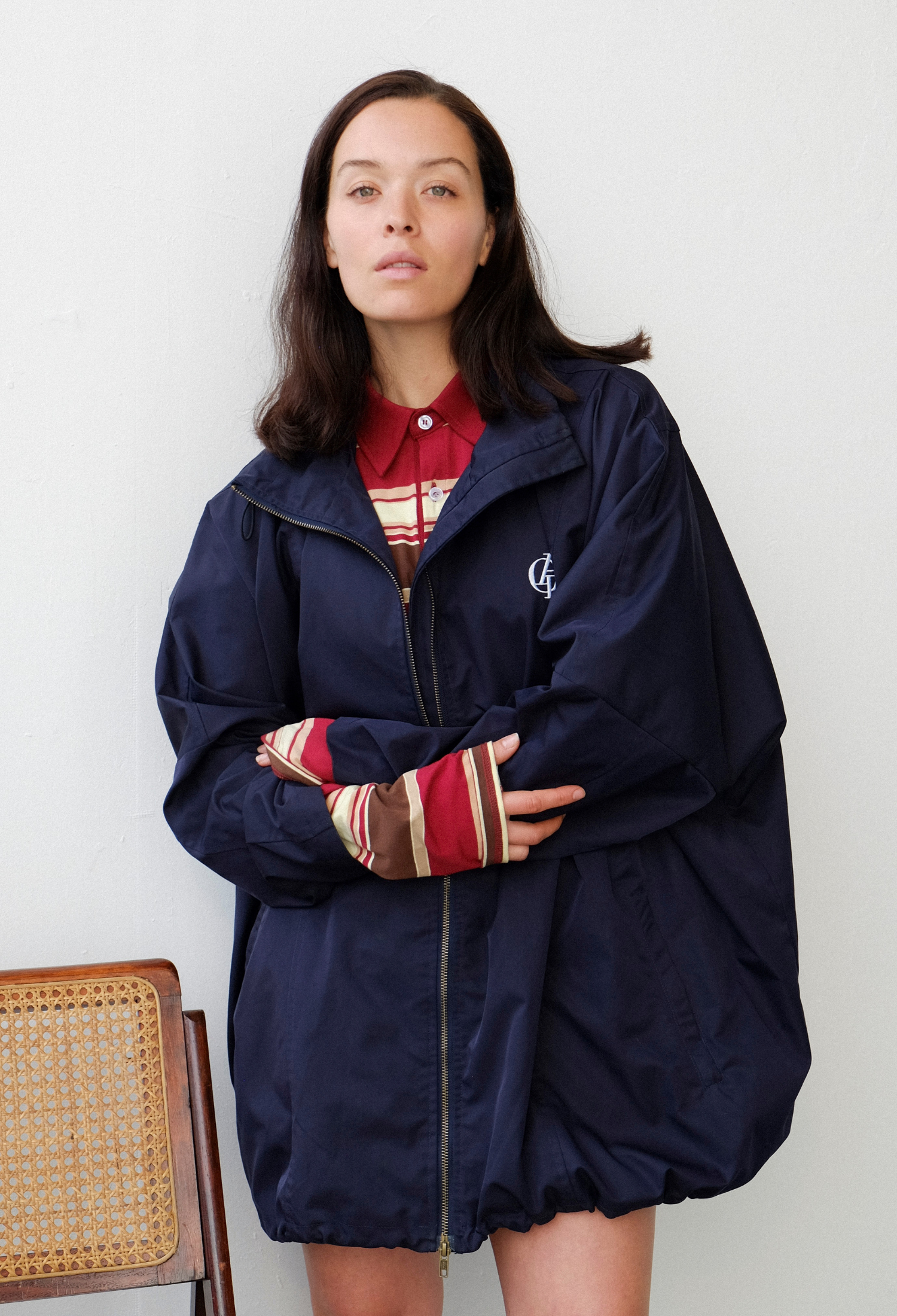 High neck windbreaker-style jacket. Designed to be worn oversized and layered for endless styling options. Made from recycled polyester.