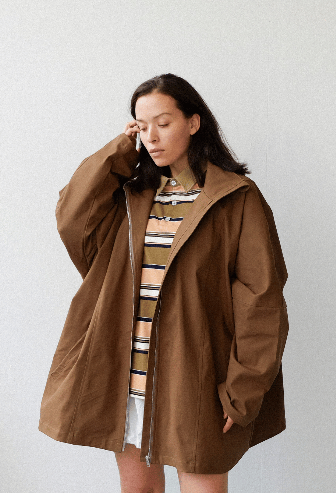 Funnel neck jacket in heavyweight cotton twill with oversized proportions - pairs perfectly with the Nev Vintage Polo in Sunset. Made with 100% cotton.