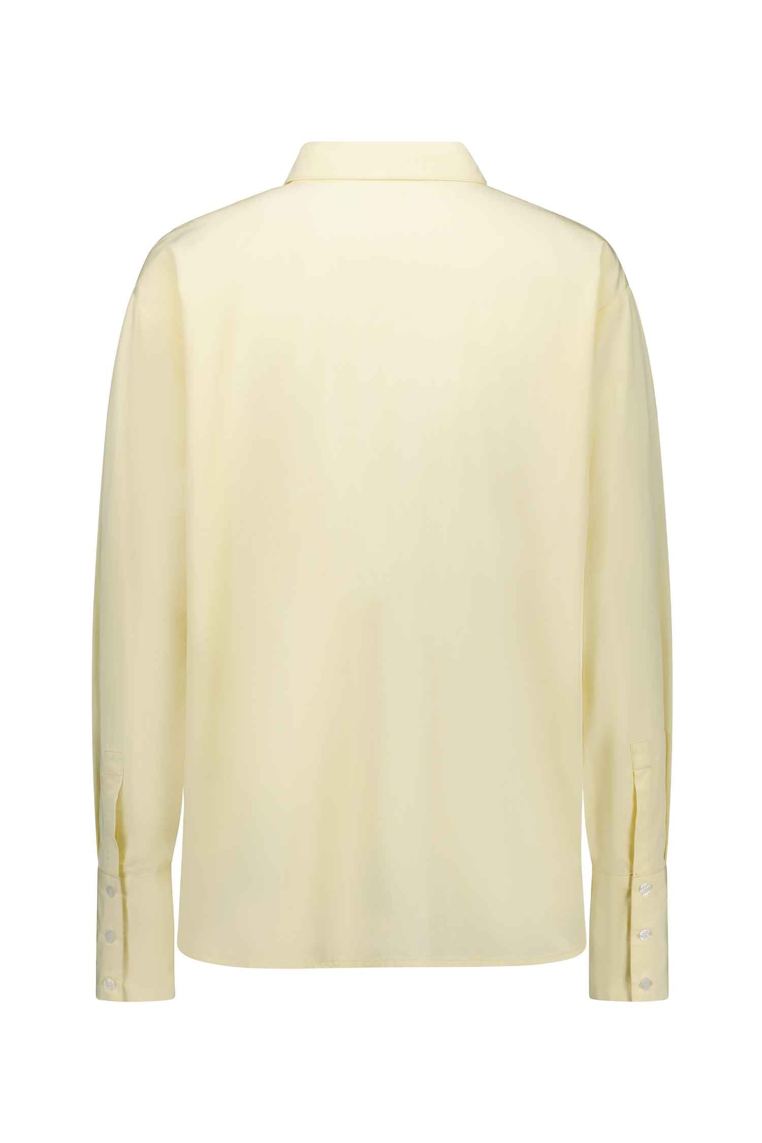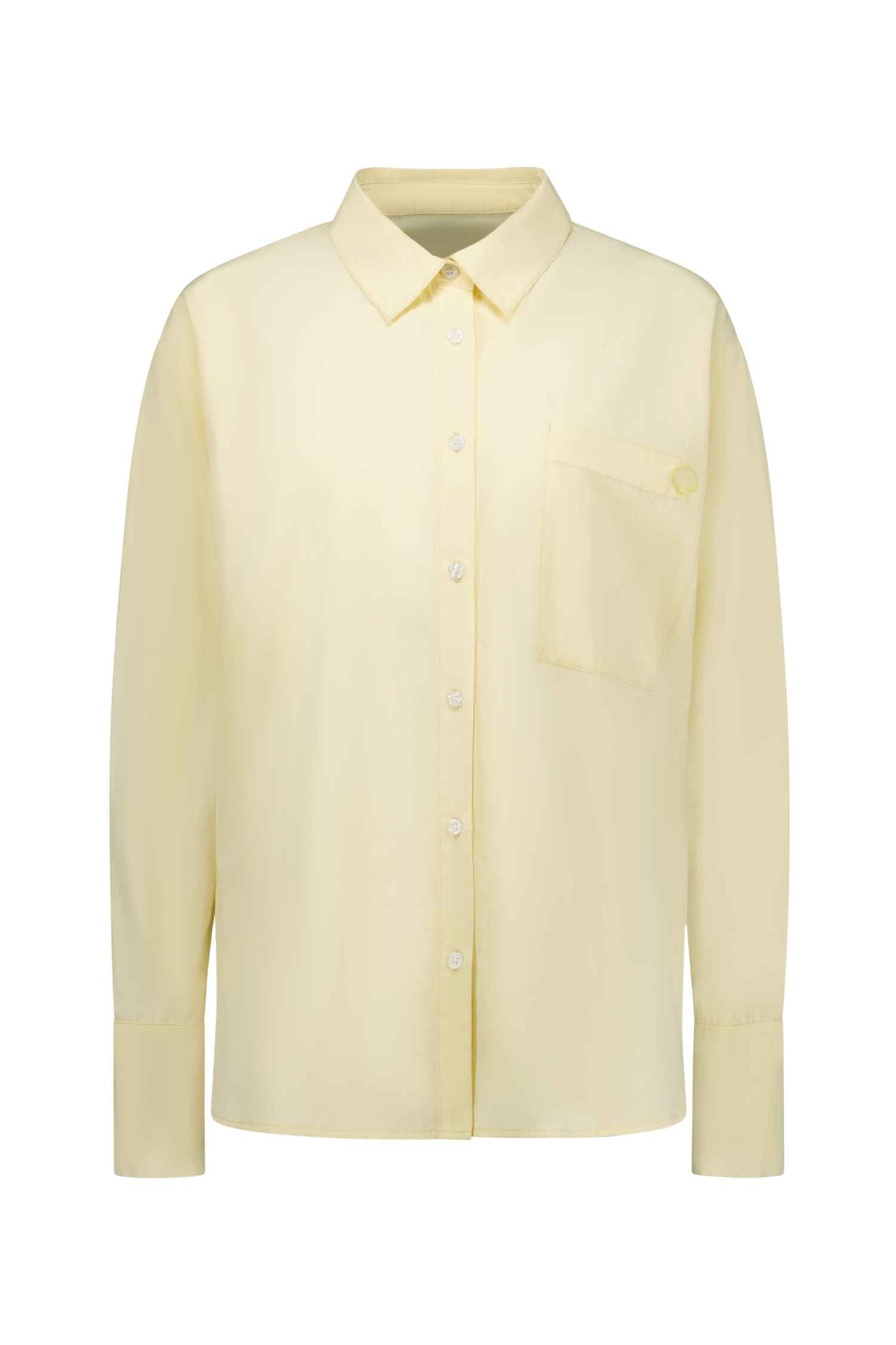 Classic button down in the perfect shade of butter yellow. Finished with subtle shell embroidery detail on the front pocket. Wear it with blue denim or pair with the Terry Ruched Skirt in Butter.