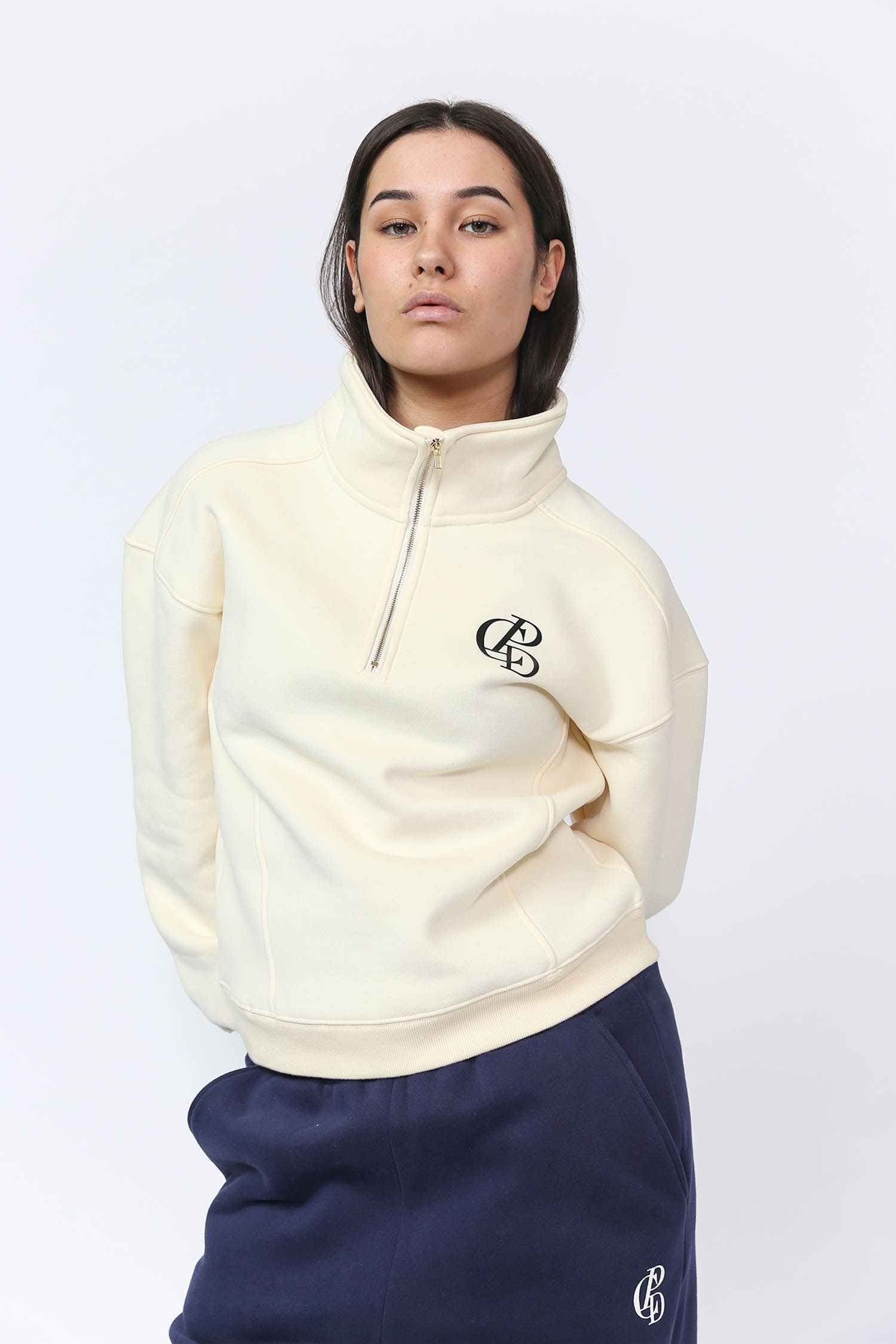 Ultra soft, organic cotton quarter zip sweatshirt with classic CPD logo emblem. Super snug with a boxy, slightly cropped fit. Throw it on with your favourite denim or over athleisure wear for the perfect everyday look.