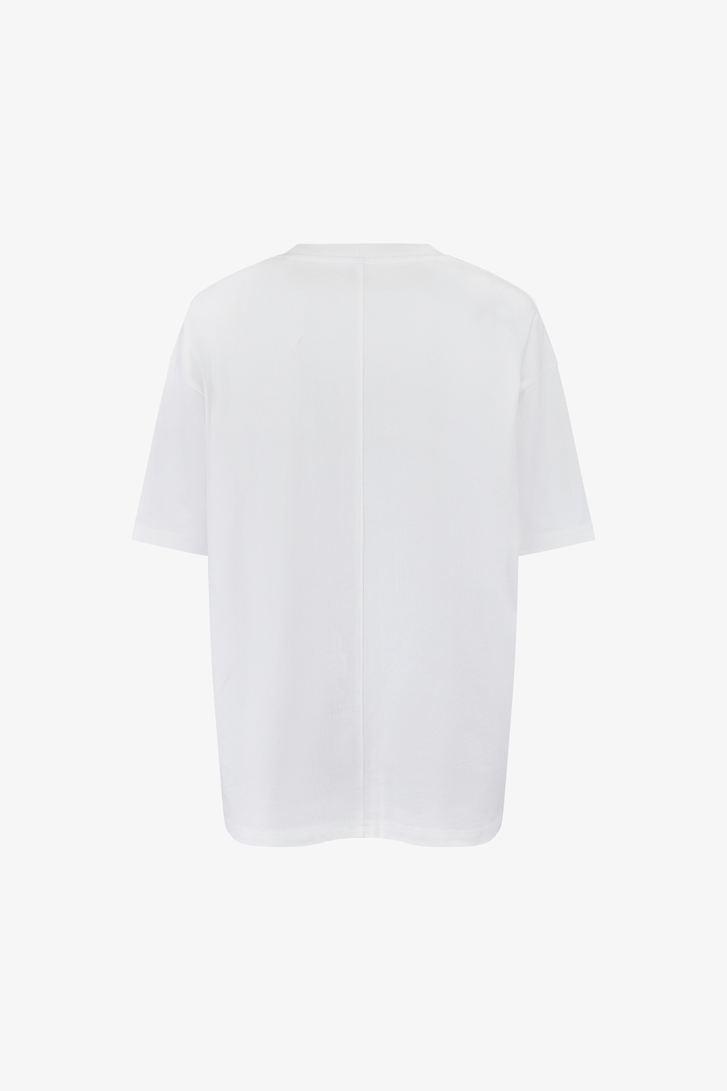 The perfect white tee. Slightly oversized, slightly boxy longer length with back stitch detail. Made with 280GSM organic cotton.