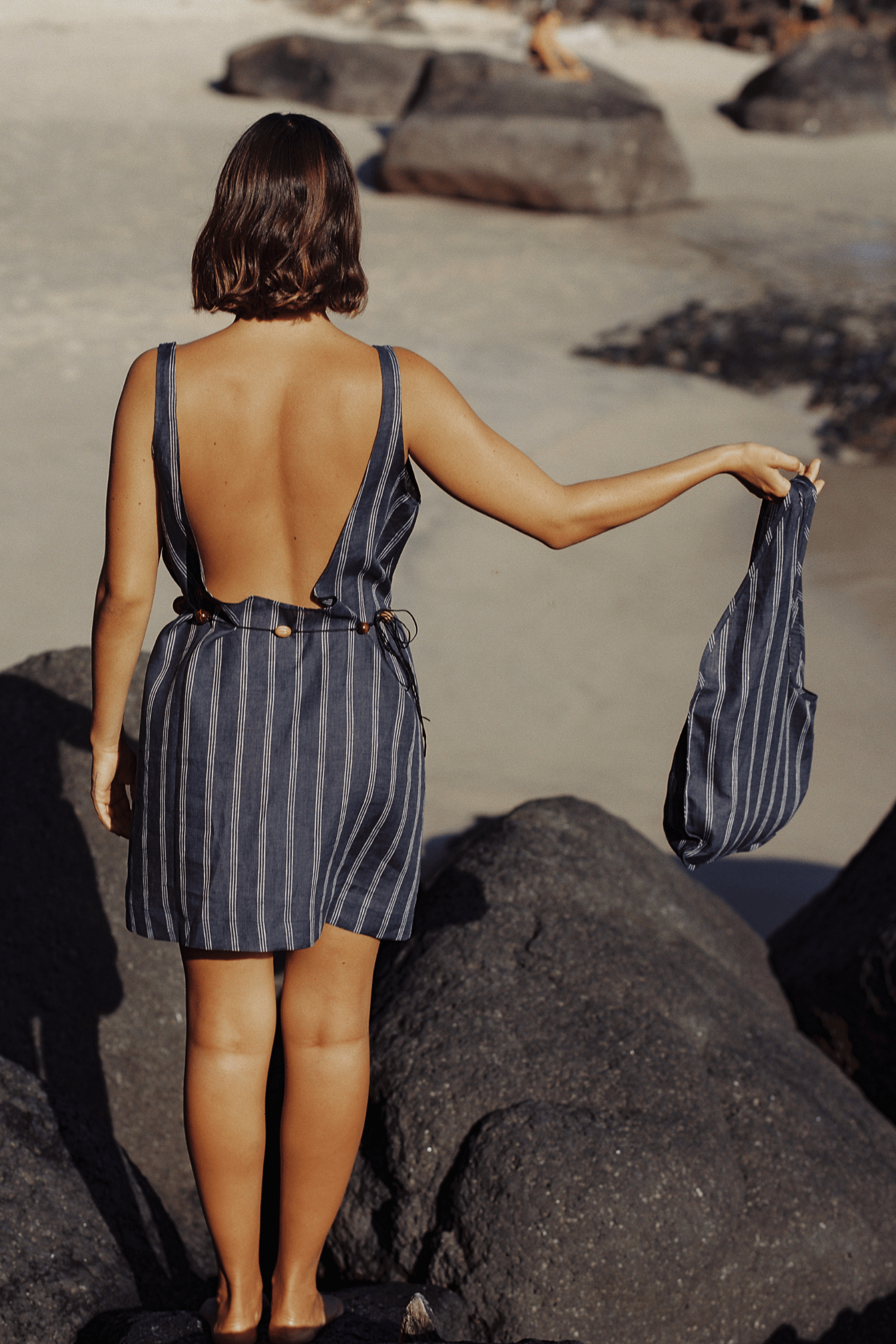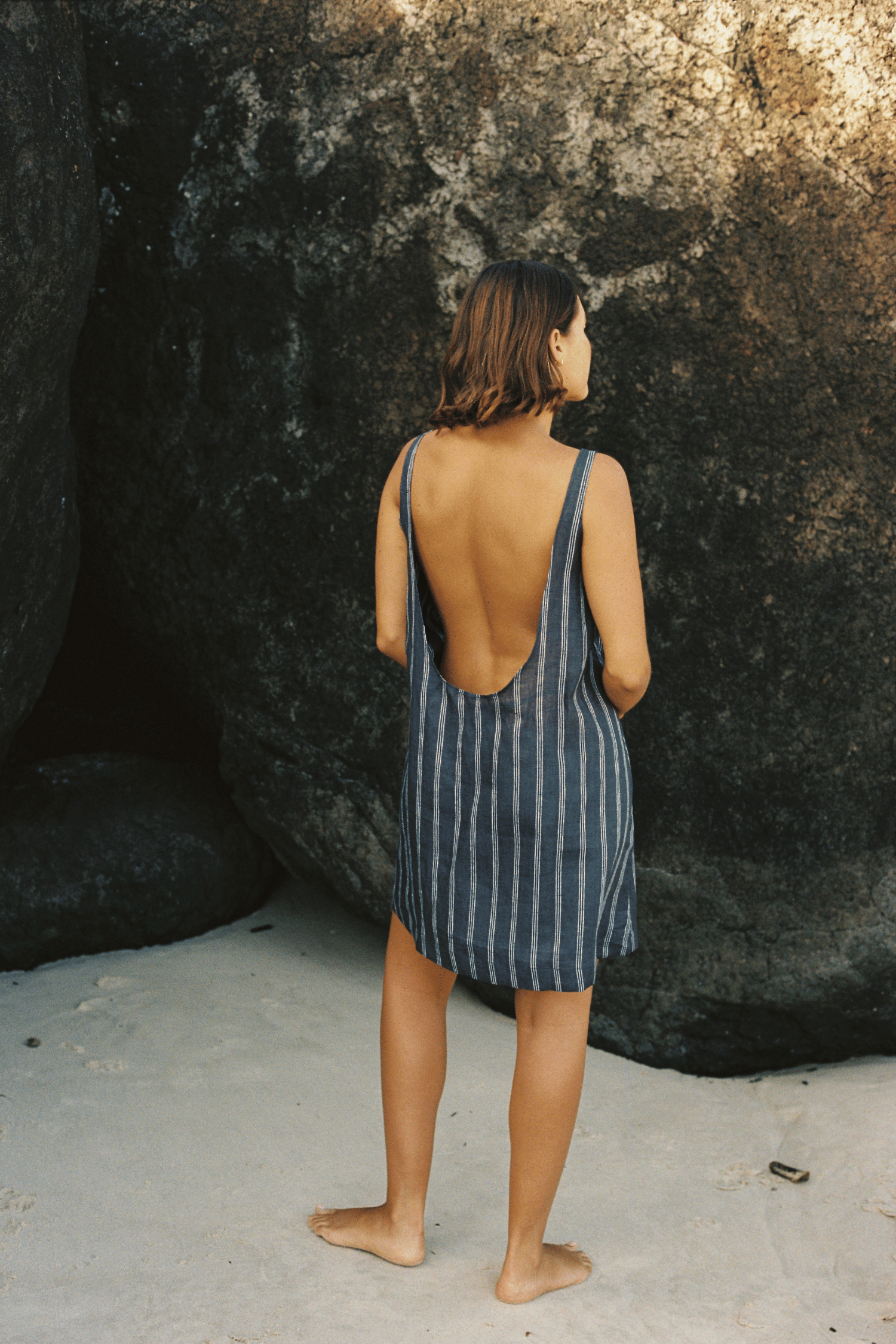 Palermo Low Back Dress - Washed Navy / White Stripe