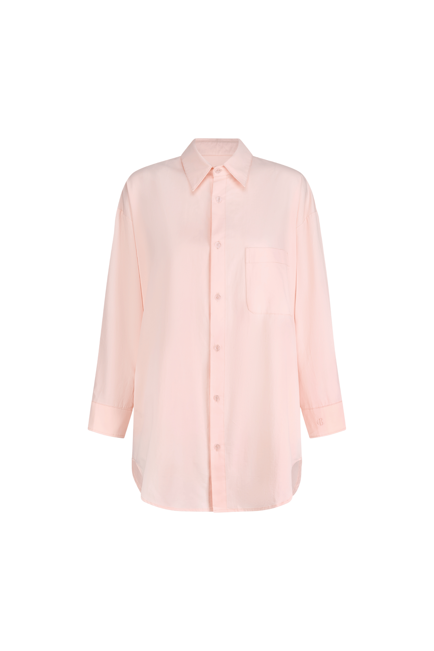 An oversized shirt in a crisp baby pink cotton. Designed with a relaxed, androgynous fit that pairs seamlessly with tailoring or denim. A playful seasonal essential with everyday ease, finished with CPD emblem embroidery on the cuff.